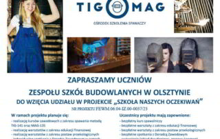 Szkoła naszych oczekiwań FEWM.06.04-IZ.00-28-0037/23 Projekt jest współfinansowany z Europejskiego Funduszu Społecznego Plus w ramach programu regionalnego Fundusze Europejskie dla Warmii i Mazur 2021-2027. Zapraszamy uczniów Zespołu Szkół Budowlanych w